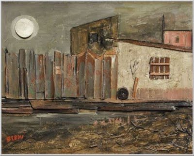 “La casa de Juanito Laguna” pertenece a una de las series más reconocidas de Antonio Berni, artista central del siglo XX argentino. El personaje de Juanito, creado por el artista a fines de los años cincuenta, representa a un niño de barrios marginales que se convirtió en símbolo de la infancia vulnerable.