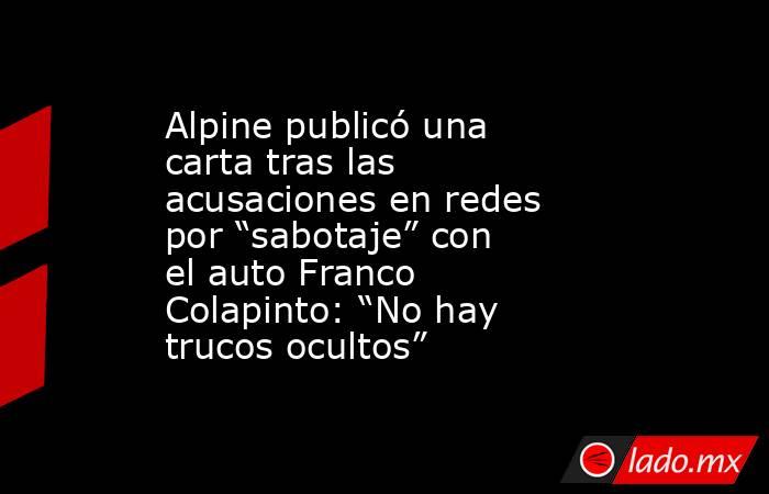 Alpine publicó una carta tras las acusaciones en redes por “sabotaje” con el auto Franco Colapinto: “No hay trucos ocultos”