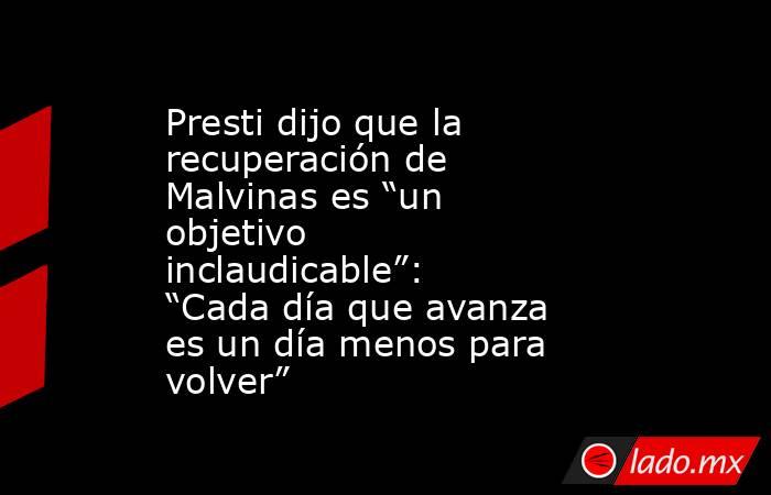 “Yo te diría que cada día que avanza es un día menos que nos falta para volver”, expresó al referirse a la cuestión Malvinas, y agregó que se trata de “un objetivo inclaudicable” que figura en la Constitución Nacional.
