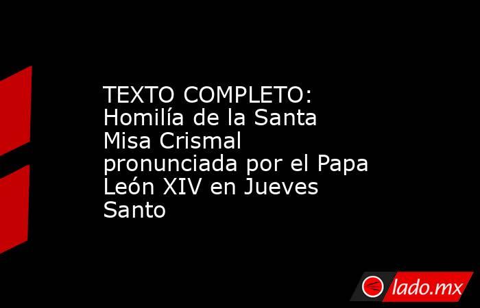 The post TEXTO COMPLETO: Homilía de la Santa Misa Crismal pronunciada por el Papa León XIV en Jueves Santo first appeared on MPV: opinión, ciudadanos, PRI, PAN, PRD.