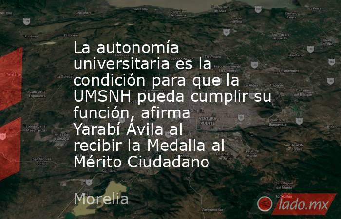 El cargo La autonomía universitaria es la condición para que la UMSNH pueda cumplir su función, afirma Yarabí Ávila al recibir la Medalla al Mérito Ciudadano apareció primero en CB Televisión.