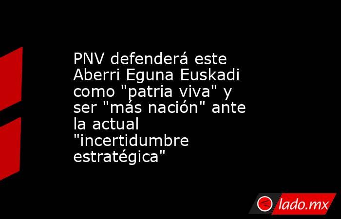 El PNV celebrará este domingo el Aberri Eguna bajo el lema "Aberria Bizi" para reivindicar que Euskadi es "una patria viva", que persigue "un proyecto de estabilidad unificado para los siete territorios que la componen", y ha defendido que, en este momento de "incertidumbre estratégica" cobra "mayor sentido la importancia de ser más Euskadi, más pueblo y más nación".