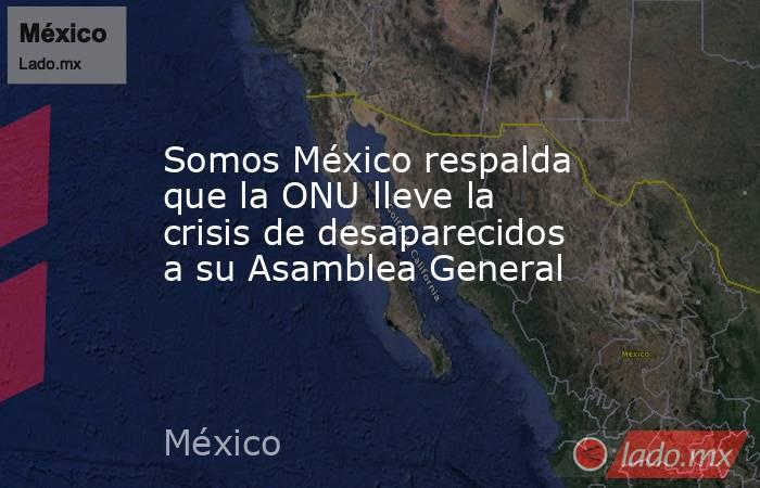 La organización Somos México respaldó la decisión del Comité de las Naciones Unidas contra la Desaparición Forzada de solicitar que la crisis de desapariciones en el país sea llevada ante la Asamblea General de la ONU, al considerar que se trata de un paso relevante para dimensionar el problema a nivel internacional.