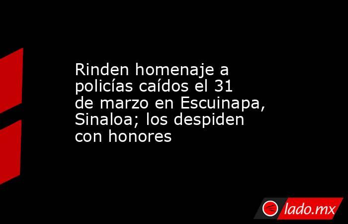 Escuinapa, Sinaloa.- En un ambiente de respeto y solemnidad, autoridades municipales de Escuinapa, corporaciones de seguridad, familiares y ciudadanía en general participaron en un homenaje de cuerpos presentes en honor a los elementos caídos Esteban Gutiérrez Mazariego, Luis Ulises García Morales, Sergio Guadalupe Pérez Rivera y Juan Antonio Rosas González, quienes perdieron la vida en cumplimiento de su deber el pasado 31 de marzo.