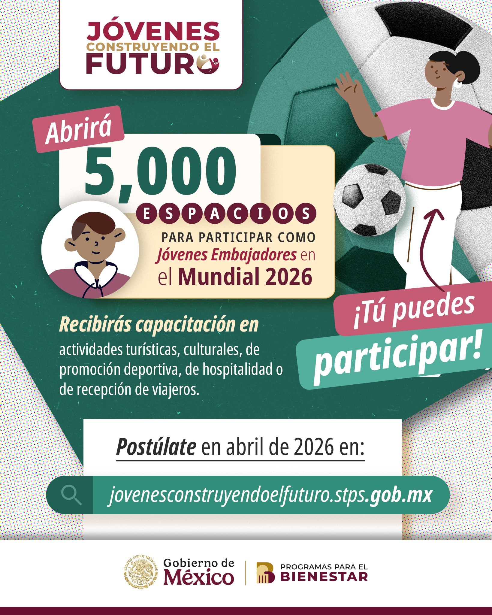 De cara a la Copa Mundial de la FIFA 2026, México no solo se prepara en infraestructura y logística, sino también en capital humano. En este contexto, la Secretaría del Trabajo y Previsión Social lanzó la convocatoria Jóvenes Embajadores del Mundial, una estrategia enfocada en integrar a personas de entre 18 y 29 años que actualmente no estudian ni trabajan.