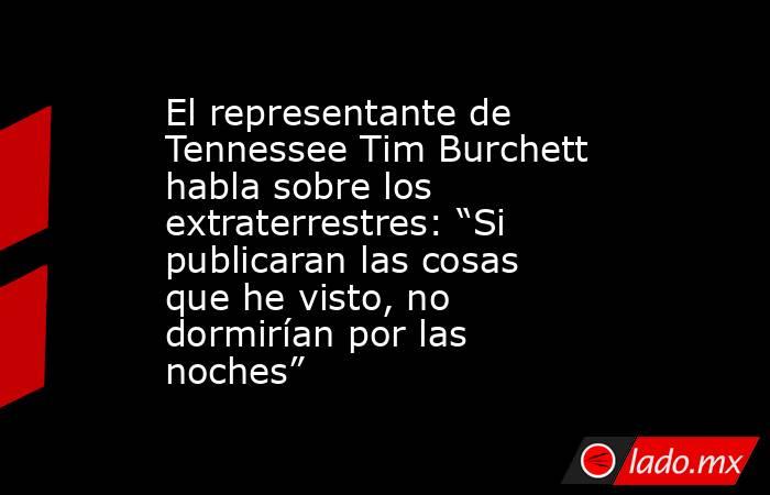 Burchett precisó que se ha reunido con “prácticamente todas las agencias con siglas que existen”. Aseguró: “Si publicaran las cosas que he visto, no dormirían por las noches, se quedarían pensando en ello”.