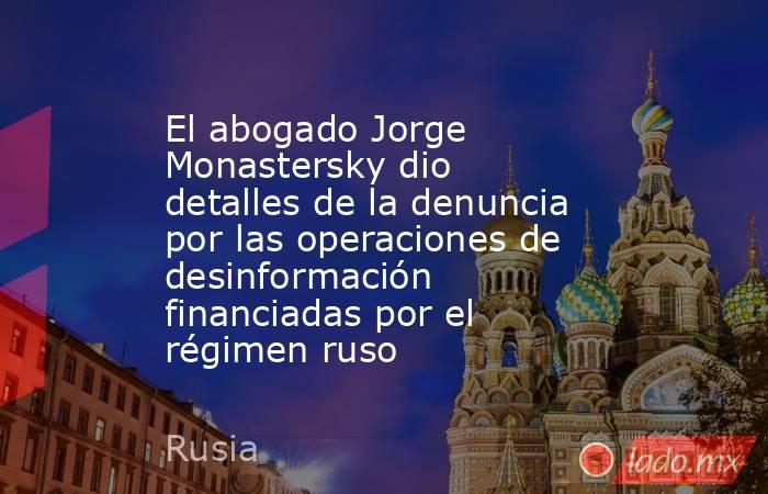 Jorge Monastersky explicó en Infobae al Regreso que la denuncia presentada ante la justicia argentina expone cómo un grupo de operaciones ruso habría destinado más de USD 283.000 al financiamiento de más de 250 en 23 medios digitales, con el objetivo de desestabilizar la gestión presidencial de Javier Milei.