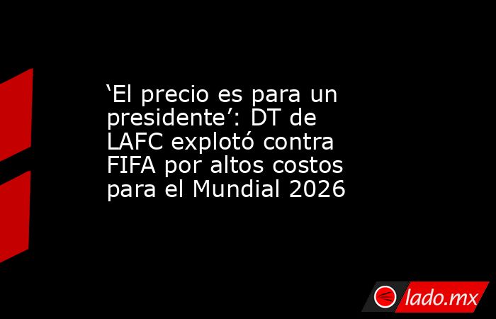 Marc Dos Santos, DT de LAFC, lanzó una dura crítica a la FIFA por el precio que le puso a las entradas del Mundial 2026. El estratega mencionó en entrevista con FOX Sports que, por un lado, le da gusto que el torneo se dispute en México, Estados Unidos y Canadá, pero también lamentó que “una persona normal no podrá ir a un estadio que está en su ciudad” durante la justa.