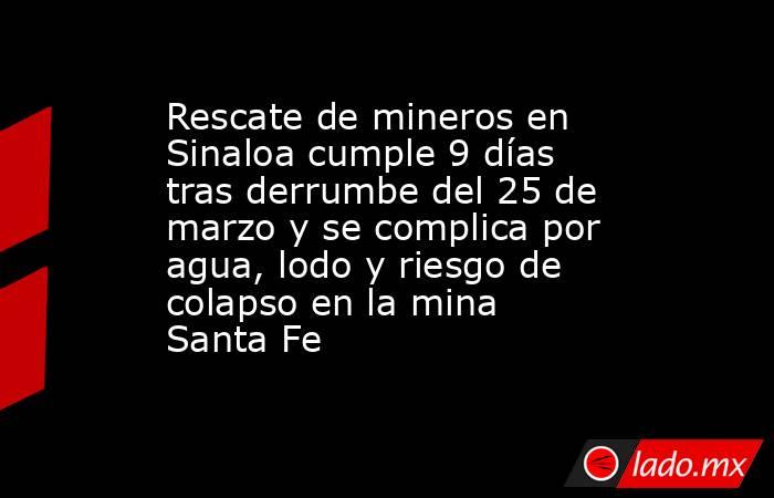 CIUDAD DE MÉXICO.- Los trabajos de rescate de tres mineros atrapados en mina en Sinaloa suman nueve días y se han complicado por el exceso de agua, lodo y riesgo de colapso en la zona, de acuerdo con autoridades.