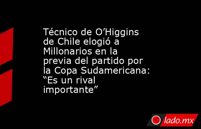 El argentino Lucas Bovaglio afirmó que enfrentar a Millonarios en el debut de la Copa CONMEBOL Sudamericana, el 7 de abril de 2026 en Rancagua, representará una exigencia importante para O’Higgins, luego de haber quedado fuera de la Copa Libertadores ante Deportes Tolima y tras vencer 2-1 a Audax Italiano en su último partido por la liga chilena, según detalló en conferencia de prensa, el 3 de abril de 2026.