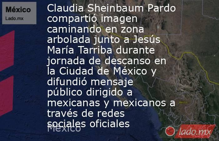 La presidenta de México, Claudia Sheinbaum Pardo, compartió este sábado una imagen en redes sociales oficiales en la que aparece realizando una caminata en una zona arbolada, acompañada por su esposo, Jesús María Tarriba.