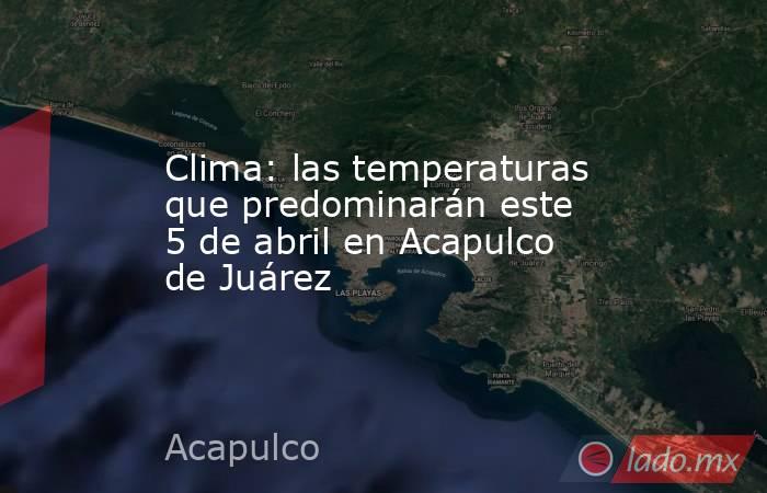 El tiempo para este domingo en Acapulco de Juárez alcanzará los 31 grados, mientras que la temperatura mínima será de 24 grados. El pronóstico de los niveles de los rayos ultravioleta es de 12.