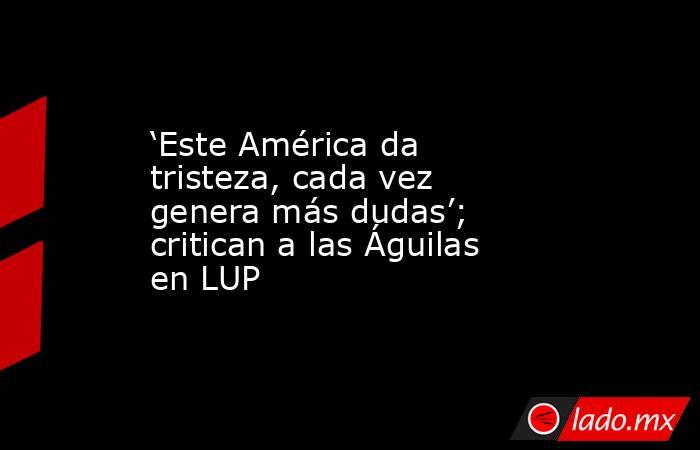 "VER A ESTE AMÉRICA DA TRISTEZA, HOY EN DÍA DAN TRISTEZA" #LUP | @yayodelatorrem respecto a la forma de jugar del Club América. @RaoulPolloOrtiz cree que André Jardine se equivocó al meter a Miguel Vázquez como lateral. pic.twitter.com/4cB5OFPm6y