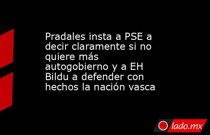 El Lehendakari, Imanol Pradales, ha apostado este domingo en Bilbao por "seguir construyendo la "casa vasca" piedra a piedra" y ha instado al PSE-EE a decir "claramente" si no quiere más autogobierno y más capacidad de decisión para Euskadi, al tiempo que ha emplazado a EH Bildu a defender "con hechos la nación vasca".