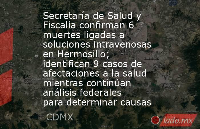HERMOSILLO, Son.- La Secretaría de Salud y la Fiscalía General de Justicia del Estado (FGJE) confirmaron que suman nueve casos de afectaciones a la salud presuntamente relacionadas con la aplicación de soluciones intravenosas en una clínica privada de Hermosillo, Sonora. De estos, seis personas han fallecido, una permanece hospitalizada en estado grave y dos ya fueron dadas de alta.