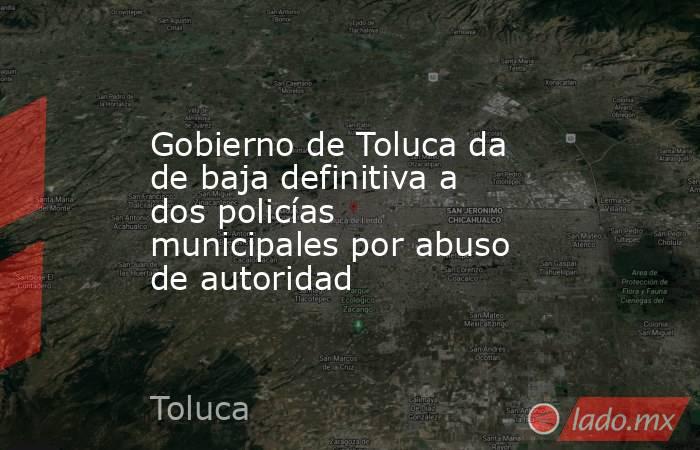 La Dirección General de Seguridad y Protección de Toluca dio de baja de manera definitiva a dos policías municipales, tras acreditarse abuso de autoridad contra una persona en aparente estado de ebriedad.