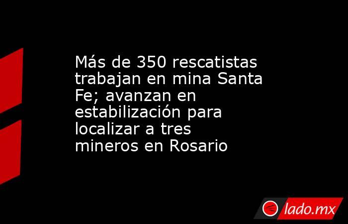 El Rosario, Sinaloa.– Más de 350 elementos de distintas corporaciones mantienen labores permanentes en la mina Santa Fe, donde continúan los trabajos de estabilización para garantizar condiciones seguras en la búsqueda de tres mineros que permanecen atrapados.
