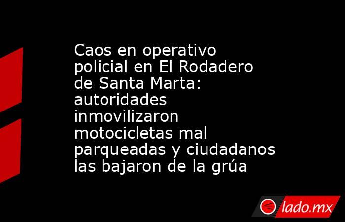 Un grupo de ciudadanos descendió de forma irregular varias motocicletas que ya habían sido inmovilizadas y subidas a grúas por funcionarios de movilidad en El Rodadero, zona turística de Santa Marta (norte de Colombia).