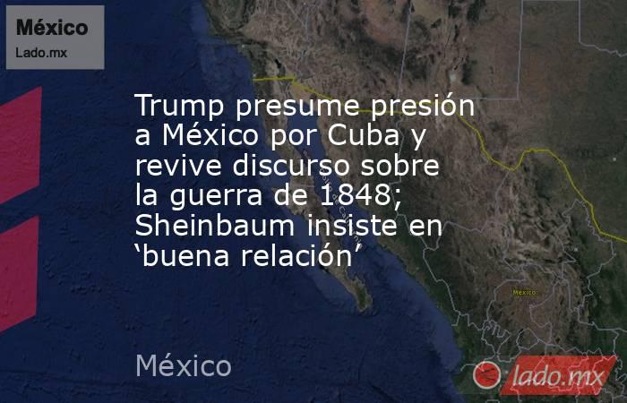 - El presidente de Estados Unidos, Donald Trump, aseguró que su gobierno logró que México limitara el envío de petróleo a Cuba, al tiempo que lanzó comentarios sobre la Guerra México-Estados Unidos, lo que generó reacciones en el ámbito político.