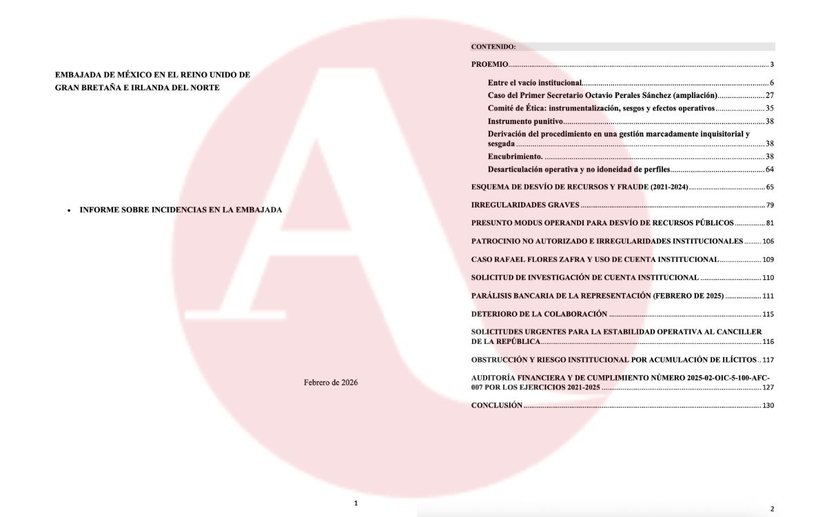 Según su propio informe, la exembajadora presentó sus primeras denuncias ante las autoridades de la Secretaría de Relaciones Exteriores en diciembre de 2024, por lo que solicitó una auditoría al Órgano Interno de Control mediante un correo electrónico el 15 de enero de 2025, petición que fue reiterada mediante otro correo el 21 de enero del mismo año.
