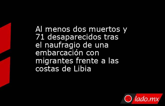 Al menos dos personas han muerto y 71 más están desaparecidas tras el naufragio el sábado de una embarcación de madera en el Mediterráneo, cerca de las costas de Libia, según ha informado la ONG alemana Sea Watch.