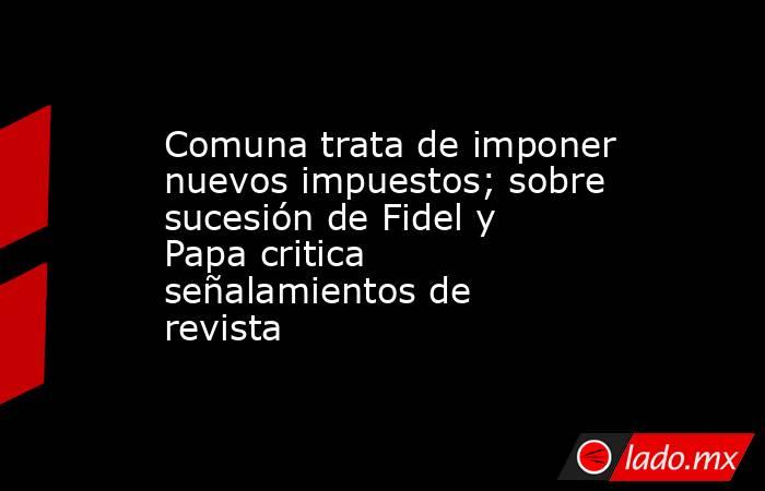 Comuna trata de imponer nuevos impuestos; sobre sucesión de Fidel y Papa critica señalamientos de revista Debate.com.mx