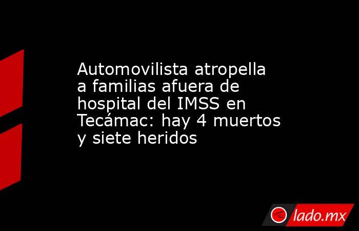 Un trágico hecho se registró en el municipio de Tecámac, en el Estado de México, donde un automovilista atropelló a varias familias que se encontraban en el exterior de un hospital, lo que dejó un saldo de al menos cuatro personas muertas y siete heridas.