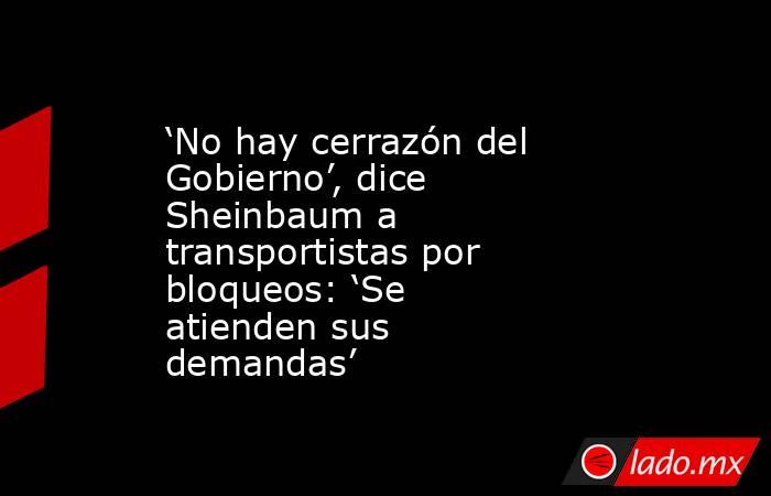 “No hay cerrazón del Gobierno. Hay transportistas que tienen demandas por problemas en los trámites. Se están atendiendo también problemas de inseguridad en carreteras, por la Guardia Nacional”, insistió la mandataria durante su conferencia ‘mañanera’.
