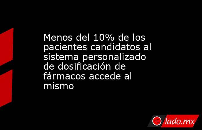 Menos del 10 por ciento de los pacientes candidatos al sistema personalizado de dosificación (SPD) de medicamentos accede al mismo, a pesar de que es un servicio cada vez más extendido en España y cuenta con una valoración ampliamente positiva por parte de usuarios y farmacéuticos, según revela un estudio del Consejo General de Colegios Farmacéuticos de España.