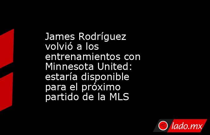 James Rodríguez poco a poco vuelve a la rutina y podría ser tenido en cuenta en el próximo partido de Minnesota United en la Major League Soccer, luego de perderse el partido contra LA Galaxy por un severo cuadro de deshidratación.