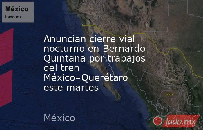 Anuncian cierre vial nocturno en Bernardo Quintana por trabajos del tren México–Querétaro este martes Expreso Querétaro