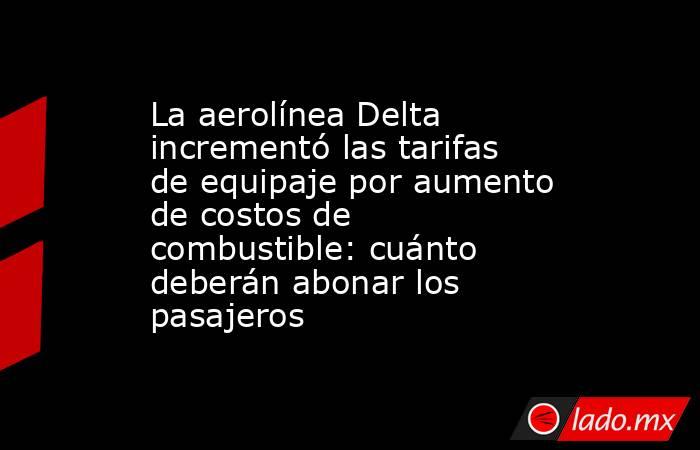 Los viajeros pagarán USD 10 más por la primera y segunda maleta registrada en estos vuelos. Este es el primer ajuste de precios en dos años para vuelos domésticos, informó Delta, que atribuyó la decisión al encarecimiento del combustible.