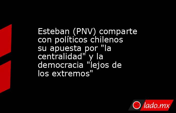 El presidente del EBB del PNV, Aitor Esteban, ha compartido con distintos representantes políticos chilenos su apuesta por "la centralidad política" y la democracia, "lejos de los extremos", en la actual época de incertidumbre que se vive a nivel mundial.