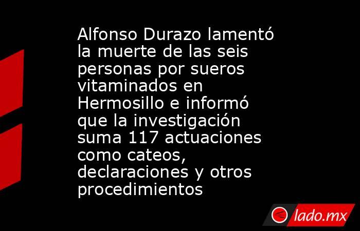 HERMOSILLO, SONORA.- El gobernador Alfonso Durazo lamentó la muerte de al menos seis personas a causa de la aplicación de sueros vitaminados en Hermosillo y aseguró que se trabaja para la pronta detención de quien es señalado como el principal responsable.