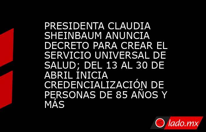PRESIDENTA CLAUDIA SHEINBAUM ANUNCIA DECRETO PARA CREAR EL SERVICIO UNIVERSAL DE SALUD; DEL 13 AL 30 DE ABRIL INICIA CREDENCIALIZACIÓN DE PERSONAS DE 85 AÑOS Y MÁS