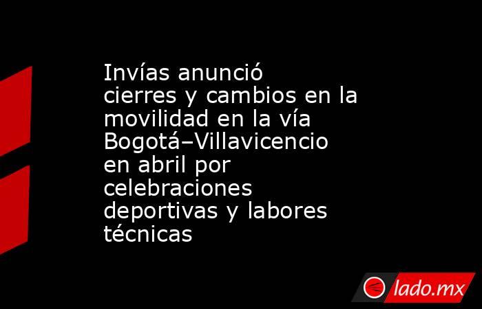 El Instituto Nacional de Vías (Invías) anunció el cierre total de la vía Bogotá–Villavicencio el viernes 10 de abril, entre las 5:00 a. m. y la 1:00 p. m., para la realización de la travesía ciclística “El Alcaraván Llanero”.