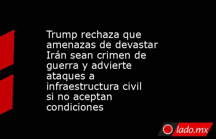 El presidente de Estados Unidos, Donald Trump, rechazó que sus amenazas de atacar infraestructura civil en Irán constituyan un crimen de guerra, en medio de crecientes críticas internacionales y cuestionamientos dentro de su propio país.