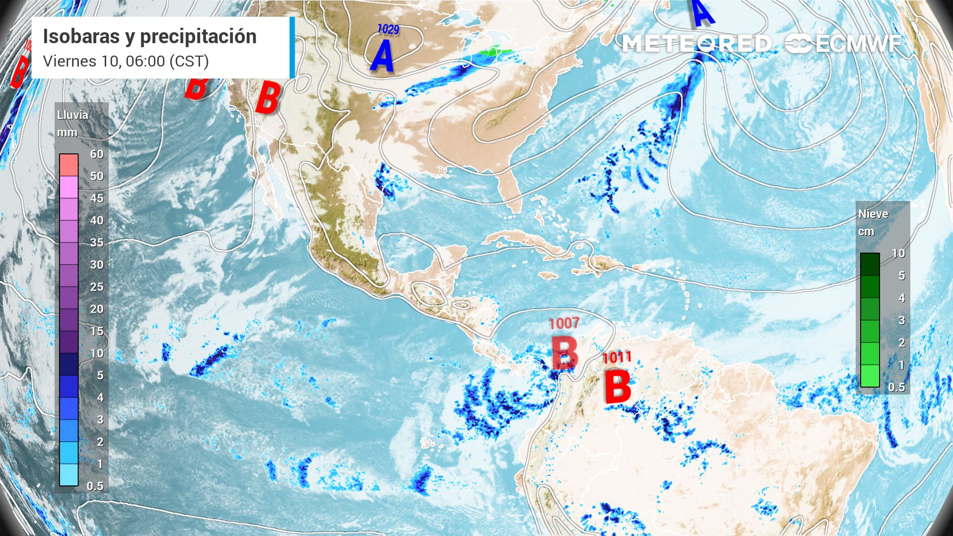 Estas condiciones son el resultado de vaguadas extendidas sobre el noreste y sureste del país, los cuales interactúan con la entrada de humedad proveniente de ambos litorales y divergencia en niveles altos de la tropósfera.