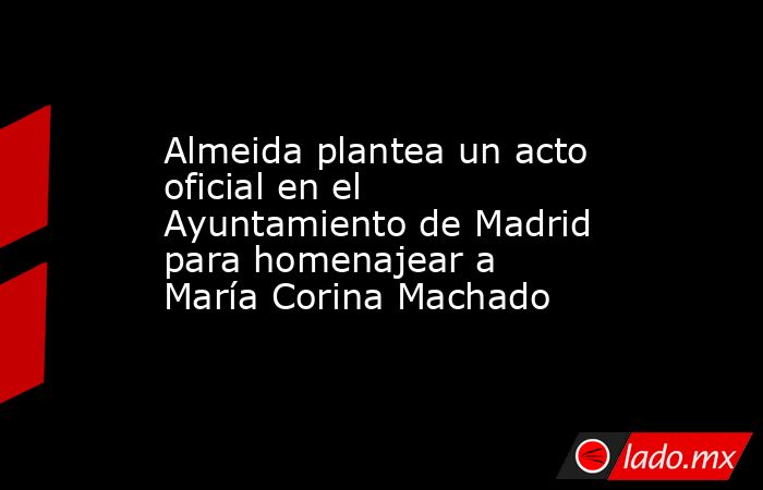 Martínez-Almeida ha adelantado que analizarán con el equipo de la opositora venezolana "la posibilidad de hacerle una recepción en el Ayuntamiento de Madrid que merece". La idea es convocarlo en el Consistorio, "en representación de todos los madrileños", desde donde brindarle "un homenaje, un reconocimiento a todos sus logros, a todo lo que ha conseguido".