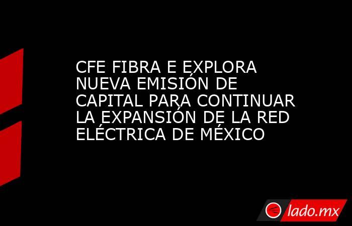 La entrada CFE FIBRA E EXPLORA NUEVA EMISIÓN DE CAPITAL PARA CONTINUAR LA EXPANSIÓN DE LA RED ELÉCTRICA DE MÉXICO se publicó primero en El Demócrata.