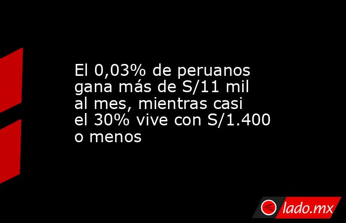 También apunta otro datos curioso. Solo el 0,03% de peruanos mayor a 18 años recibe ingresos que superan los S/11.000 al mes. Esto quiere decir que solo tres de cada 10 mil peruanos logran generar estas ganancias.