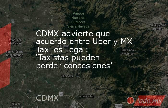El Gobierno de la Ciudad de México, encabezado Clara Brugada, rechazó la alianza anunciada entre MX Taxi y Uber para integrar taxis concesionados a la plataforma digital y advirtió que el acuerdo no cuenta con aval de las autoridades capitalinas, por lo que podría derivar en sanciones administrativas.