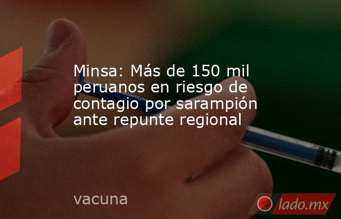 El Ministerio de Salud (Minsa) alertó que más de 150 mil peruanos, entre niños y adultos hasta los 30 años, se encuentran en riesgo de contagio por sarampión debido a la baja cobertura de vacunación.