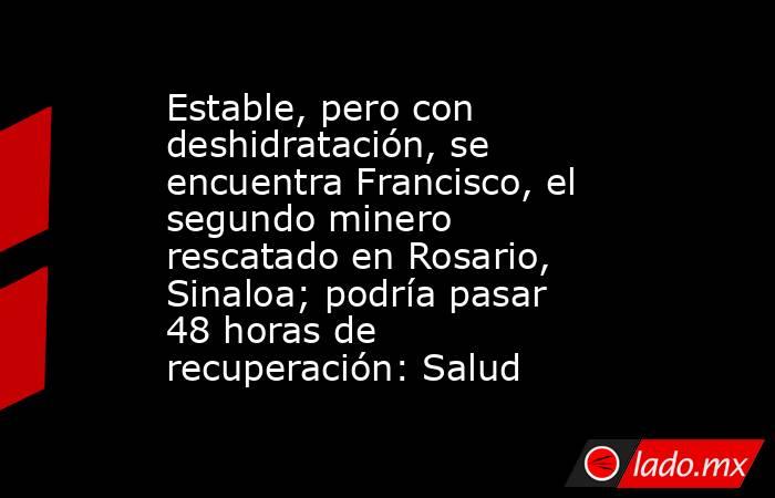 Culiacán, Sinaloa. Francisco el segundo minero rescatado en la mina Santa Fé, en el municipio de Rosario, Sinaloa, se encuentra estable y con cierto grado de deshidratación, informó el secretario de Salud del Estado, Cuitláhuac González Galindo, este jueves 09 de abril de 2026.