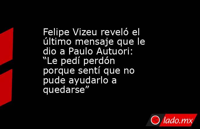 Felipe Vizeu dedicó un espacio especial para referirse a Paulo Autuori, su anterior entrenador en Sporting Cristal, a quien considera una figura clave en su carrera. Según relató, la despedida con el técnico brasileño fue emotiva y marcada por un intercambio de disculpas mutuas. “Le pedí perdón a Paulo Autuori porque sentí que no pude ayudarlo a quedarse. Él, con humildad, me respondió que era él quien debía disculparse, por no poder ayudarme más”, rememoró Vizeu sobre el momento vivido en el club.