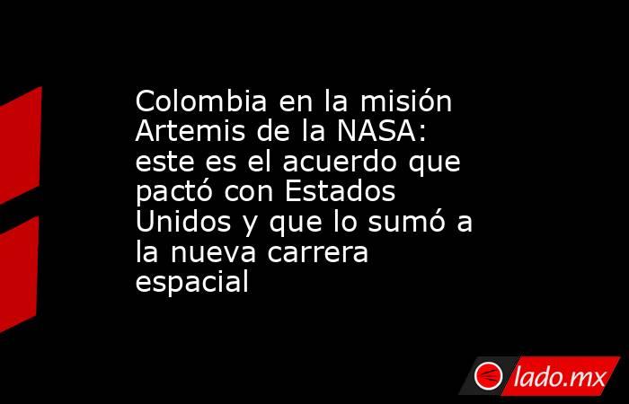Colombia figura como país firmante de los Acuerdos de Artemisa, un conjunto de principios internacionales establecidos en 2020 por la NASA en coordinación con el Departamento de Estado de los Estados Unidos y otras naciones fundadoras. El objetivo de estos acuerdos es establecer normas comunes para la exploración civil del espacio y la utilización responsable de la Luna y otros cuerpos celestes.