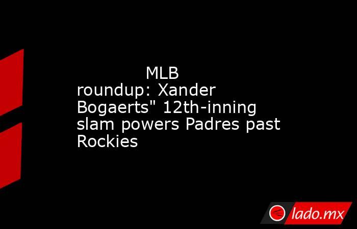 Xander Bogaerts belted a grand slam in the bottom of the 12th inning Thursday night as the San Diego Padres rallied past the visiting Colorado Rockies