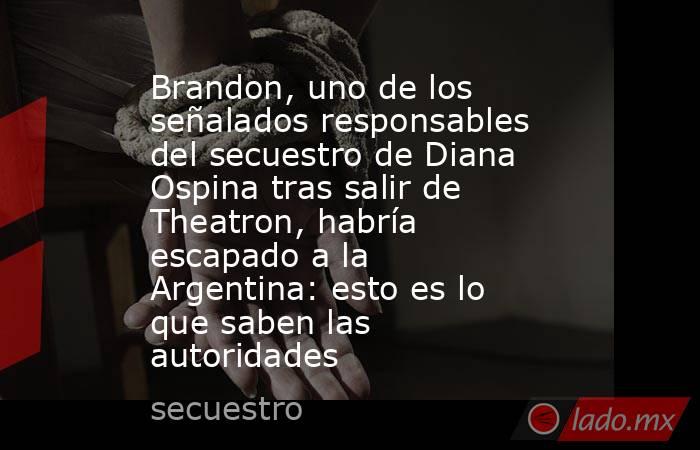 Alias Brandon, uno de los implicados en el secuestro de la diseñadora de modas Diana Ospina a las afueras de la discoteca Theatron en Bogotá, habría huido a Argentina tras el delito, lo que obligó a la Fiscalía General de la Nación a cooperar con autoridades de al menos dos países para dar con su paradero.
