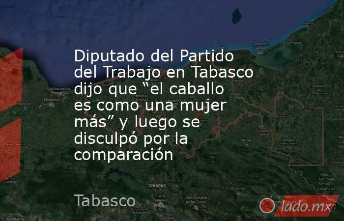 El diputado local por el Partido del Trabajo en Tabasco, Martín Palacios Calderón, coordinador de su fracción parlamentaria y comisionado político del partido, generó una fuerte polémica tras comparar a las mujeres con caballos durante una rueda de prensa en el Congreso del estado, en un evento con asociaciones de charros y cabalgantes. Palacios dijo textualmente:”Yo les digo que el caballo es como una mujer más: hay que estar atentos, que coman bien y hay que estar atentos a que no les falle el tema de salud, porque si no lo cuidan, el caballo no va a durarles”.