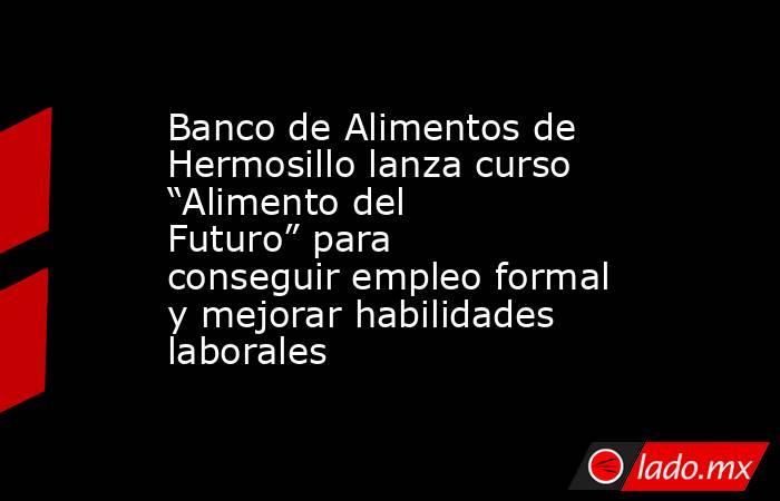 HERMOSILLO, Sonora.- El Banco de Alimentos de Hermosillo anunció la apertura del curso de capacitación “Alimento del Futuro”, dirigido a personas que buscan integrarse a un empleo formal y fortalecer sus habilidades personales, emocionales y laborales.